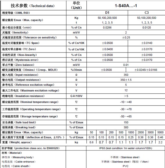 S40AC3/3T稱重傳感器型號: