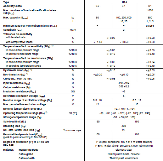 德國HBM稱重傳感器U2A/5T產品參數:TNU廣州南創電子科技有限公司