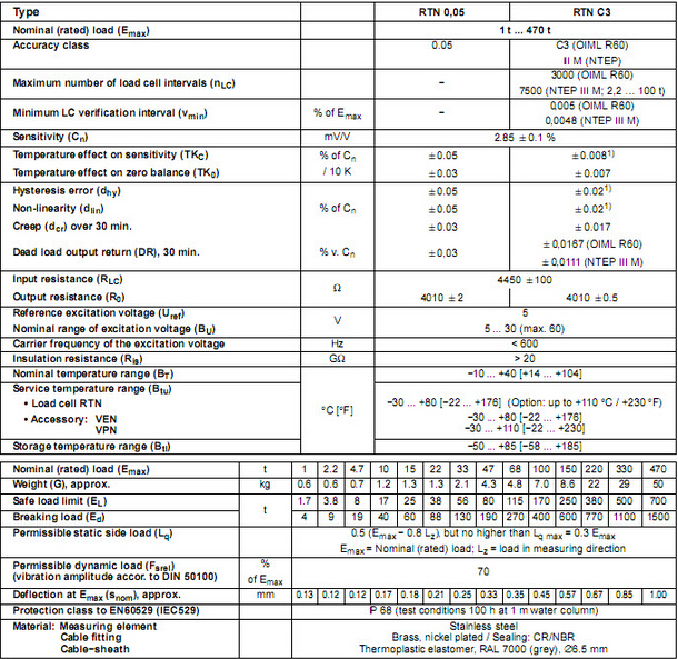 德國HBM稱重傳感器RTNC3/1t產品參數:JCC廣州南創電子科技有限公司