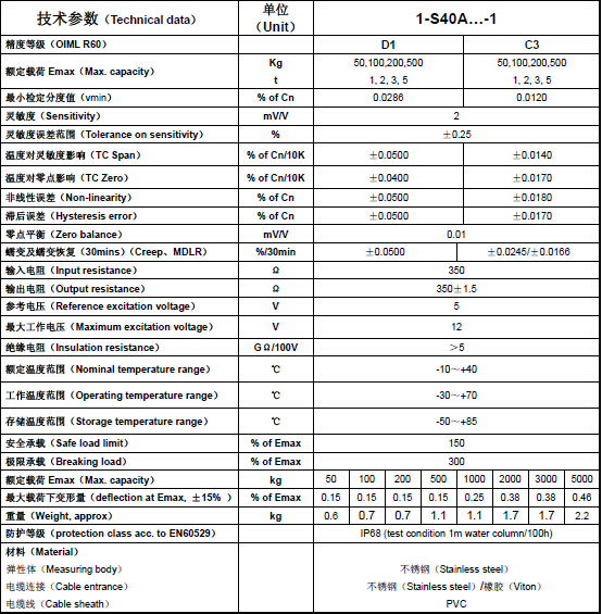 德國HBM稱重傳感器S40A/200KG產品參數:Hqv廣州南創電子科技有限公司