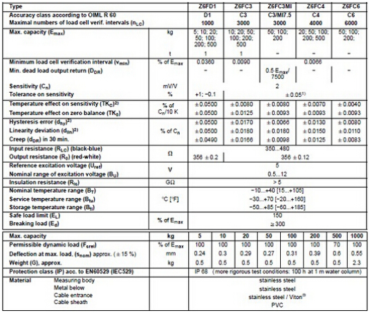 德國HBM Z6FC3系列稱重傳感器所有量程如下:bl8廣州南創電子科技有限公司