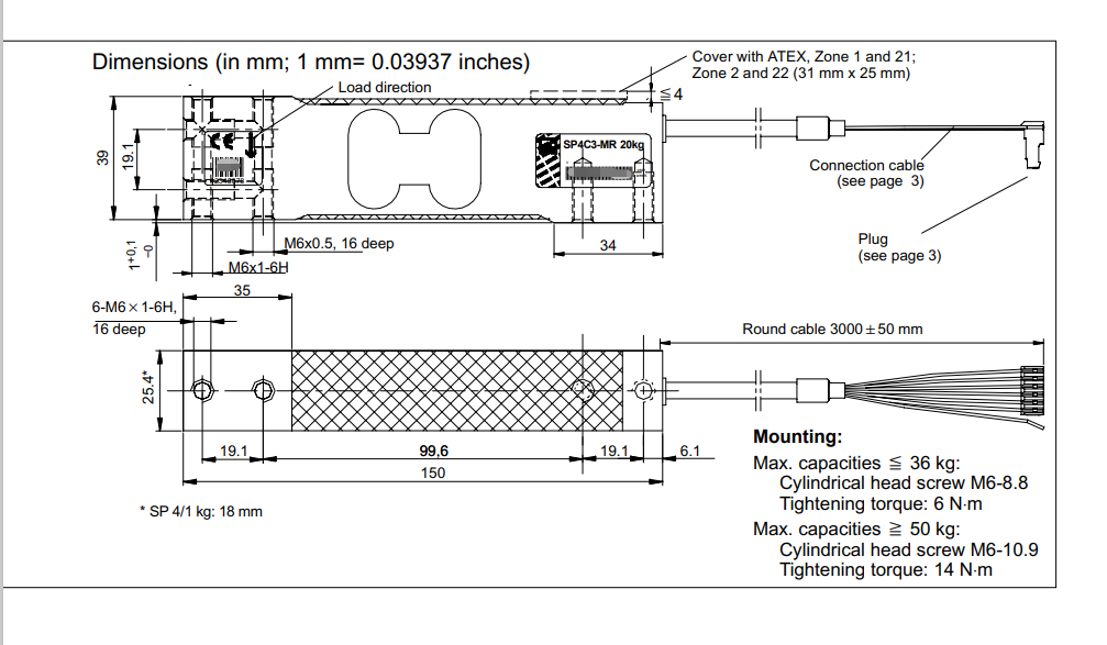 德國HBM稱重傳感器SP4MC3MR 10KG尺寸圖:cgw廣州南創電子科技有限公司
