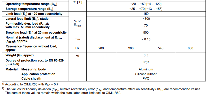 FuL廣州南創電子科技有限公司德國HBM稱重傳感器1-PW22C3/20kg-1產品技術參數:FuL廣州南創電子科技有限公司
