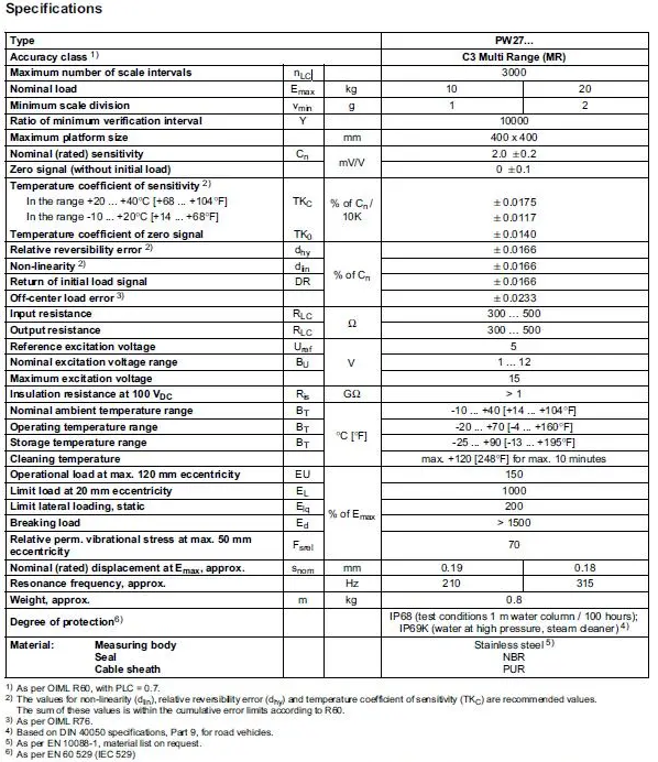 德國HBM稱重傳感器PW27AC3 20kg產品技術參數:XYO廣州南創電子科技有限公司
