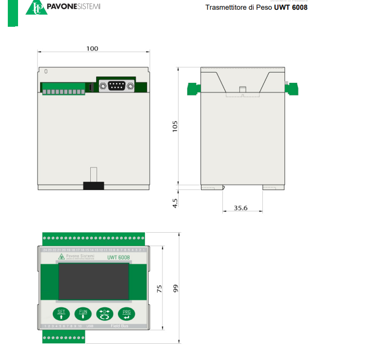 意大利Pavone Sistemi重量變送器尺寸圖:1AG廣州南創電子科技有限公司