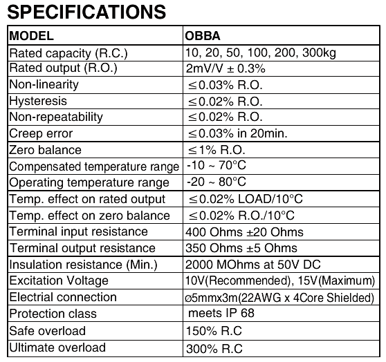 bongshin OBBA傳感器產(chǎn)品參數(shù)描述: