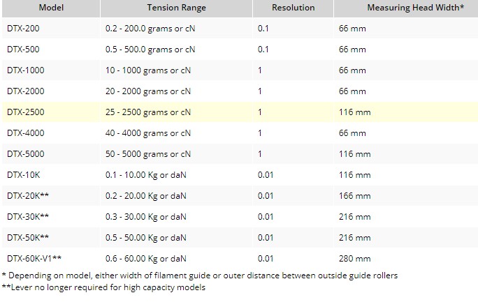 12種張力范圍從0.2-200 g到0.6-60 Kg,線徑最大3mm