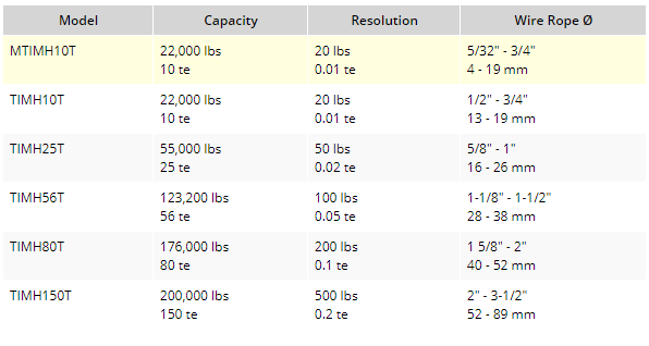 容量范圍從10t到150t,鋼絲繩直徑最大為52mm / 2”cSS廣州南創電子科技有限公司