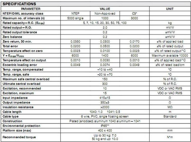 Tedea-Huntleigh稱重傳感器1041-30kg部份型號: