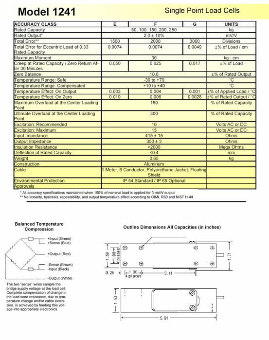 美國(guó)特迪亞1241-100kg傳感器技術(shù)指標(biāo):