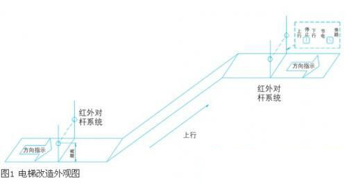在扶梯上下兩端各裝一對立桿,此桿用來安裝固定紅外感應開關和扶梯上下行指示標識。另外在扶梯上端對桿上還要安裝一對鑰匙開關,一個是節電和市 電模式切換開關,另一個是上行、停止、下行模式選擇開關(曳引機安裝在扶梯上端電井內,故開關就近選擇安裝)。當節電/市電切換開關選擇市電時,自動扶梯 開、停、上下行方式與未改造前一致。當節電/市電開關選擇節電時,扶梯自帶啟動開關、上下行開關無效,此時扶梯運行方向由安裝在立桿上的上行/停止/下行 開關來選擇控制。扶梯由紅處感應開關啟動。當有人走上扶梯時,首先會觸發紅外傳感器開關。當系統檢測到紅外傳感器開關信號時,電梯就會被啟動,并開始計 時。在計時期間,如果有第二個人走上扶梯,系統會重新計時,直到設定時間結束,電梯便會自動停機。這樣實現了“人來自啟,人去自停”的運行模式,使扶梯顯 得更加人性化。