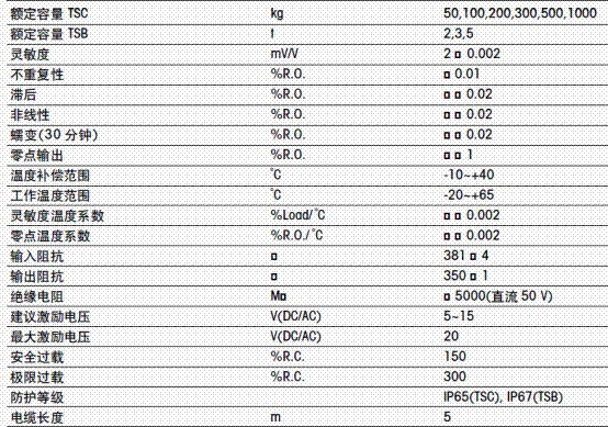 托利多0745A-2.2稱重傳感器技術(shù)指標: