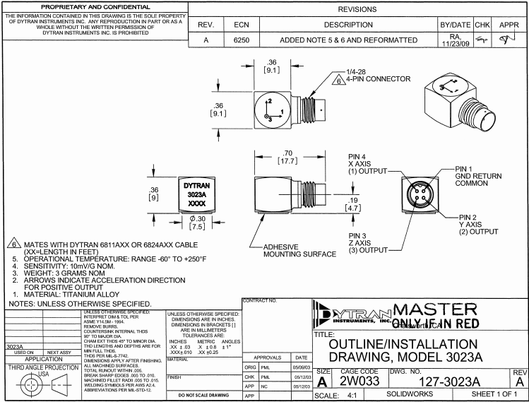 美國Dytran 3023a加速度傳感器技術(shù)參數(shù)圖: