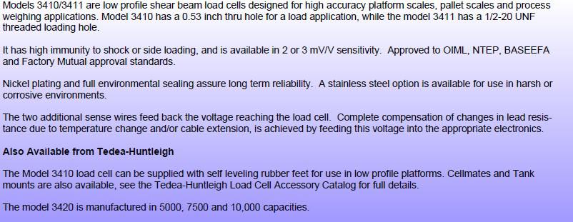 最終超載Ultimate Overload tedea 3410-4000lbs傳感器:300 % of Rated Capacity