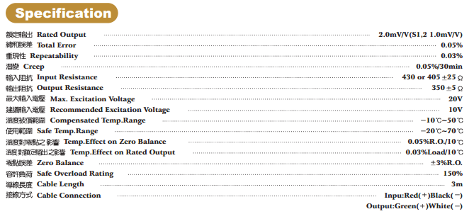 臺灣JIHSENSE荷重元S-10kg_S-10kg傳感器介紹:1982年,初期以精密加工為主要業務,至1987年有感於國內力量感測器荷重元(Loadcell)昂貴的售價及冗長的交貨期將不利於未來自動化及高精密度機器設備的發展,於是毅然投入研發,並自國外及國內研究單位吸收各項相關技術,經過兩年的研究發展,終於在1989年(民國78年)成功開發出SA荷重元,臺灣JIHSENSE SA稱重傳感器。