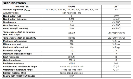 美國Vishay Revere 5203-25klbs稱重傳感器5203系列所有量程如下:chI廣州南創電子科技有限公司