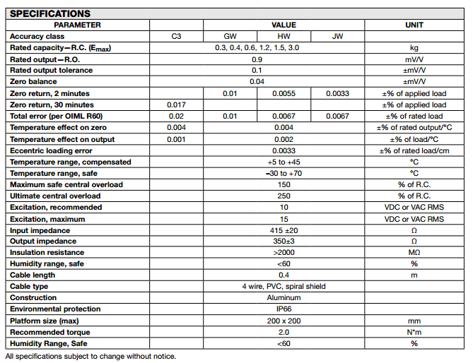 美國特迪亞tedea 1004稱重傳感器系列所有量程如下:eIj廣州南創(chuàng)電子科技有限公司
