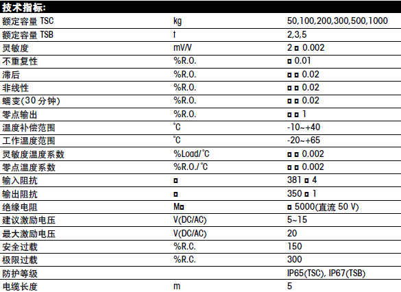 梅特勒托利多稱重傳感器TSC-50kg產品參數:r9V廣州南創電子科技有限公司