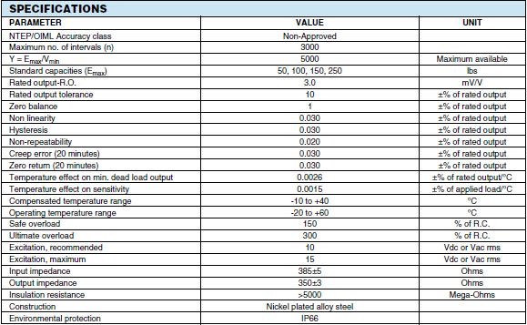美國世銓Celtron MBB系列稱重傳感器所有量程如下: M1D廣州南創電子科技有限公司