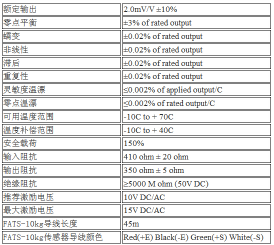美國Transcell稱重傳感器FATS-30kg產品參數:pMc廣州南創電子科技有限公司
