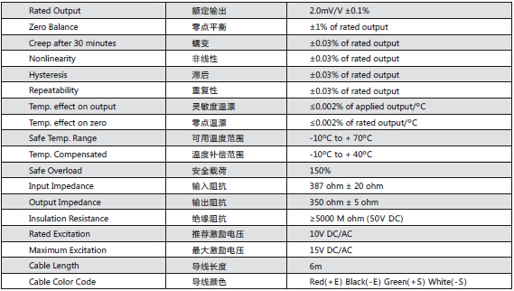 美國Transcell稱重傳感器SBT-2T產品參數:atr廣州南創電子科技有限公司