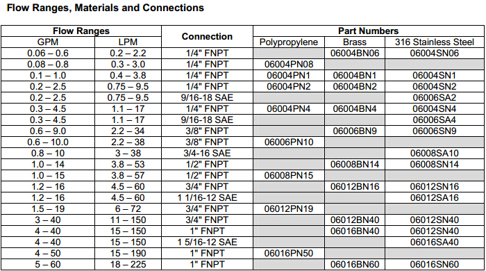 。壓降小于10 psi最大流量模型除了06004 pn06,06004 bn06和06004 sn06;Uza廣州南創電子科技有限公司