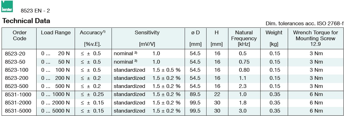 將被測量的負載是使用或者施加按鈕或特定的應用程序線程部分的負載8523-100傳感器通過M8螺紋,它位于緊張的軸和壓縮傳感器。應變計全橋是在傳感器元件,其將所施加的壓力成電信號。8523-100稱重傳感器的安裝是沒有問題的,由于三點支撐。這降低了安裝面要求。為了獲得最佳的測量結果,該力以進行測量,必須沿軸向施加到傳感器。橫向力,可避免構造措施像安裝在可移動的軸承載荷傳感器,指導袖子等載入按鈕(見圖紙)啟用的最佳器具的壓縮力的負荷傳感器。測量在非軸向載荷應用程序錯誤是可以忽略不計達由于傳感器的凸面3 °的角度誤差。的輸出信號為正時中的校正方向運動(壓力) 。在特征值張力的方向可以從校準方向偏離的壓縮高達0.3%。