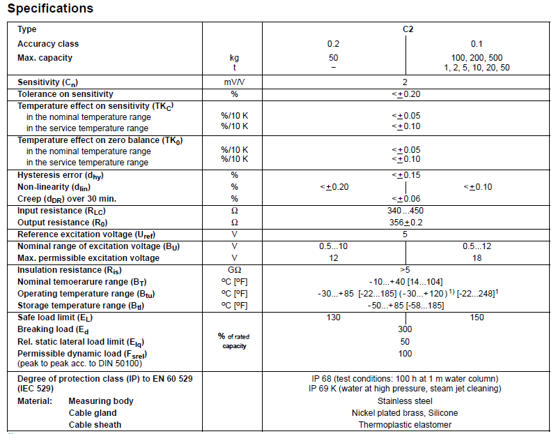 傳感器C2/200KG其有非常高的精度(按照 OIML R 60 標準),并且可以應用于惡劣的工業環境是平臺秤,料斗秤.的理想選擇。