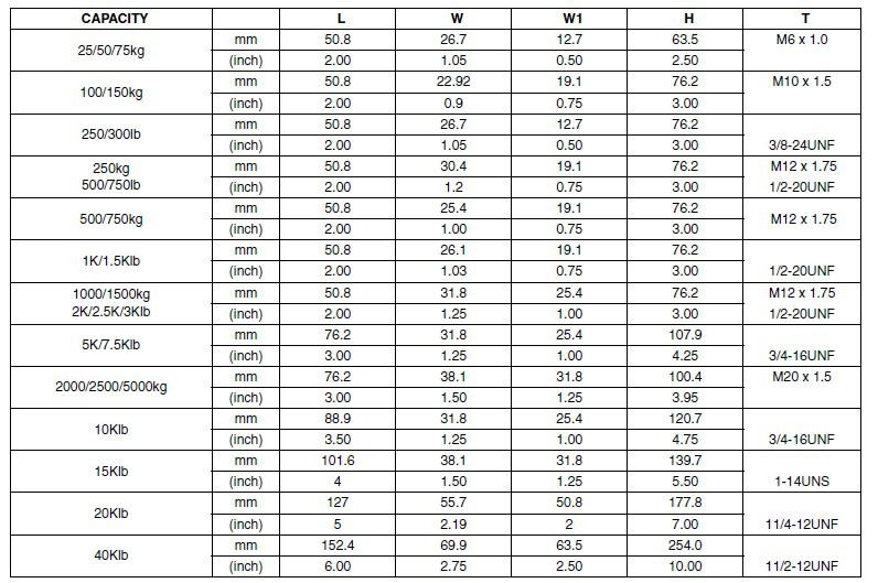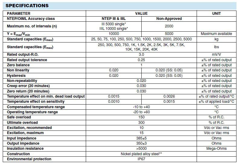 • Capacities: 25 to 5000kg, 250 to 40Klb