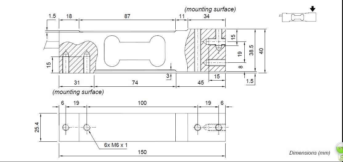 - (安裝面)6 19 100 19 6 150 25.4 86X M6 ×1 1.5 15 40