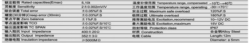 柯力過載限位板環式BHS-10T拉力稱重傳感器參數: