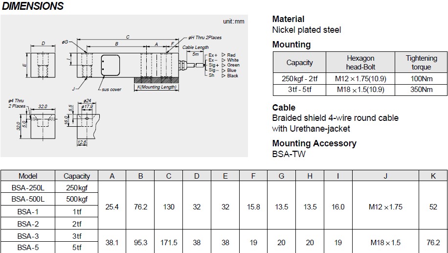 韓國CAS BSA-3T稱重傳感器其它型號: