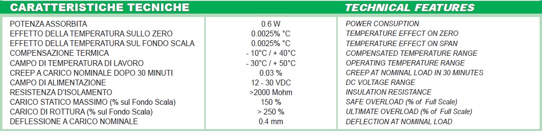 意大利CTOL-2500kg傳感器參數詳情:Znt廣州南創電子科技有限公司