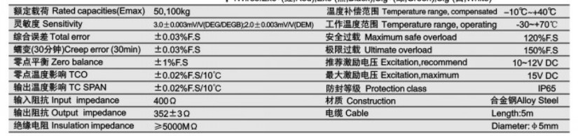 產(chǎn)品品牌:美國(SUNcells)柯力稱重傳感器DEM-50KG