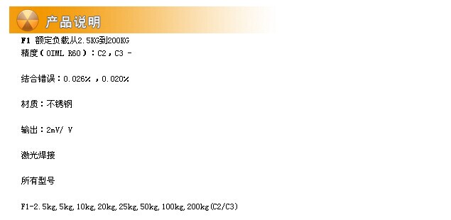 F3-10kg、 F3-25kg、 F3-50kg、 F3-100kg、 F3-200kg、