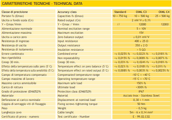 產品名稱:意大利NBC Elettronica GL-200kg 稱重傳感器