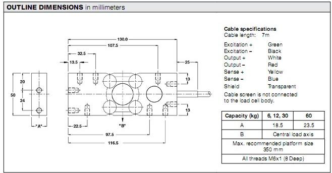 21466: Load Cell,SBM 363-B10-500 -20P1 500 lb 20ft RTI 3mV/V 350 OHM WW NTEP IIIL 1