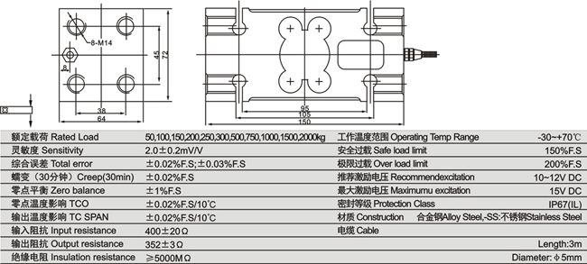靈敏度Sensitivity(2.0±0.2)mV/V