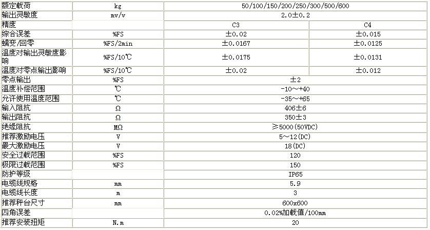 L6G-C4-150kg-3G6稱重傳感器相關技術參數: