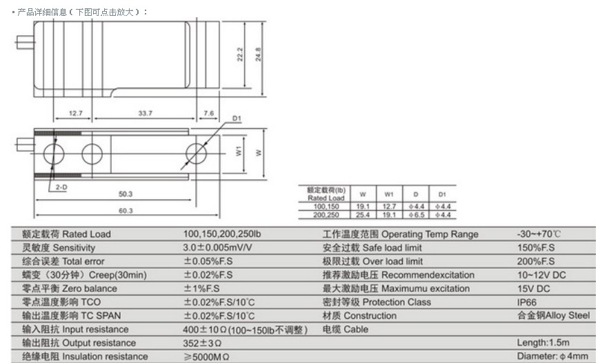 產品品牌:美國(MKcells)柯力稱重傳感器MBB-200LB
