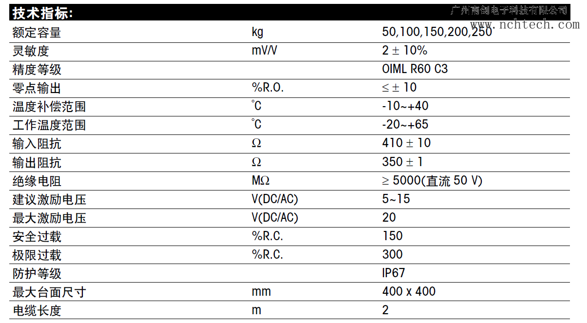•30-250kg容量范圍fxr廣州南創(chuàng)電子科技有限公司