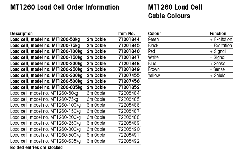 METTLER TOLEDO MT1260-635kg傳感器6米線長:acW廣州南創電子科技有限公司