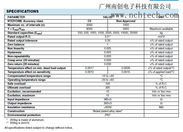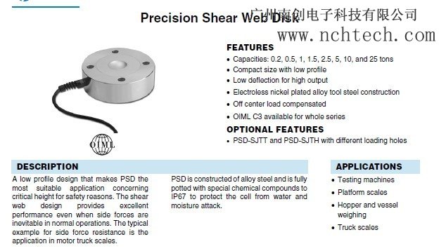美國(guó)世銓PSD-10t稱(chēng)重傳感器技術(shù)參數(shù):
