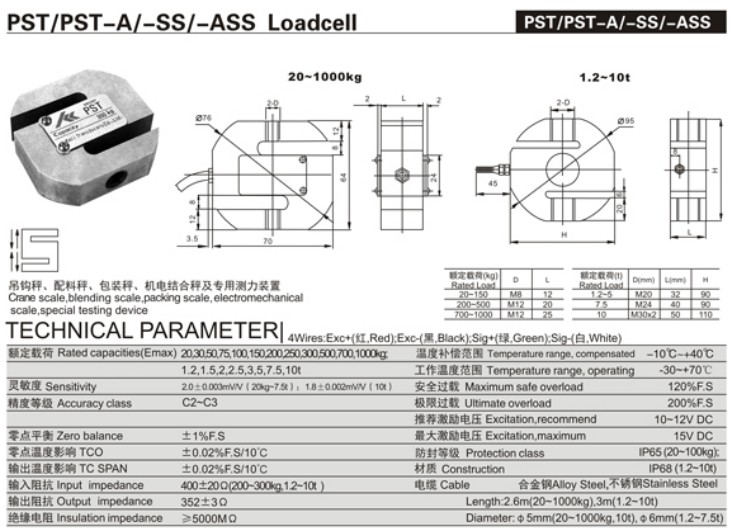 PST-200KG為高精度的S型傳感器,采用密封式外殼設計,防護等級為IP68.工作溫度范圍-30'C- 70℃,可應用于多種工業環境.