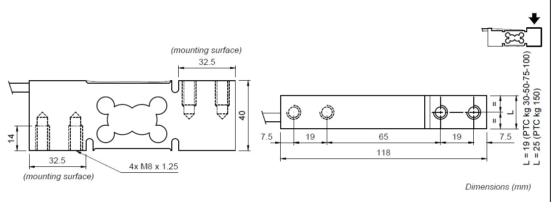- 單點式稱重傳感器用于平臺400 x 400毫米PTC