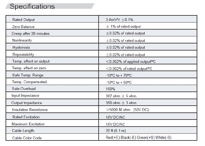 美國Transcell SBSB-SBSB-2000kg稱重傳感器技術參數圖:Pvc廣州南創電子科技有限公司