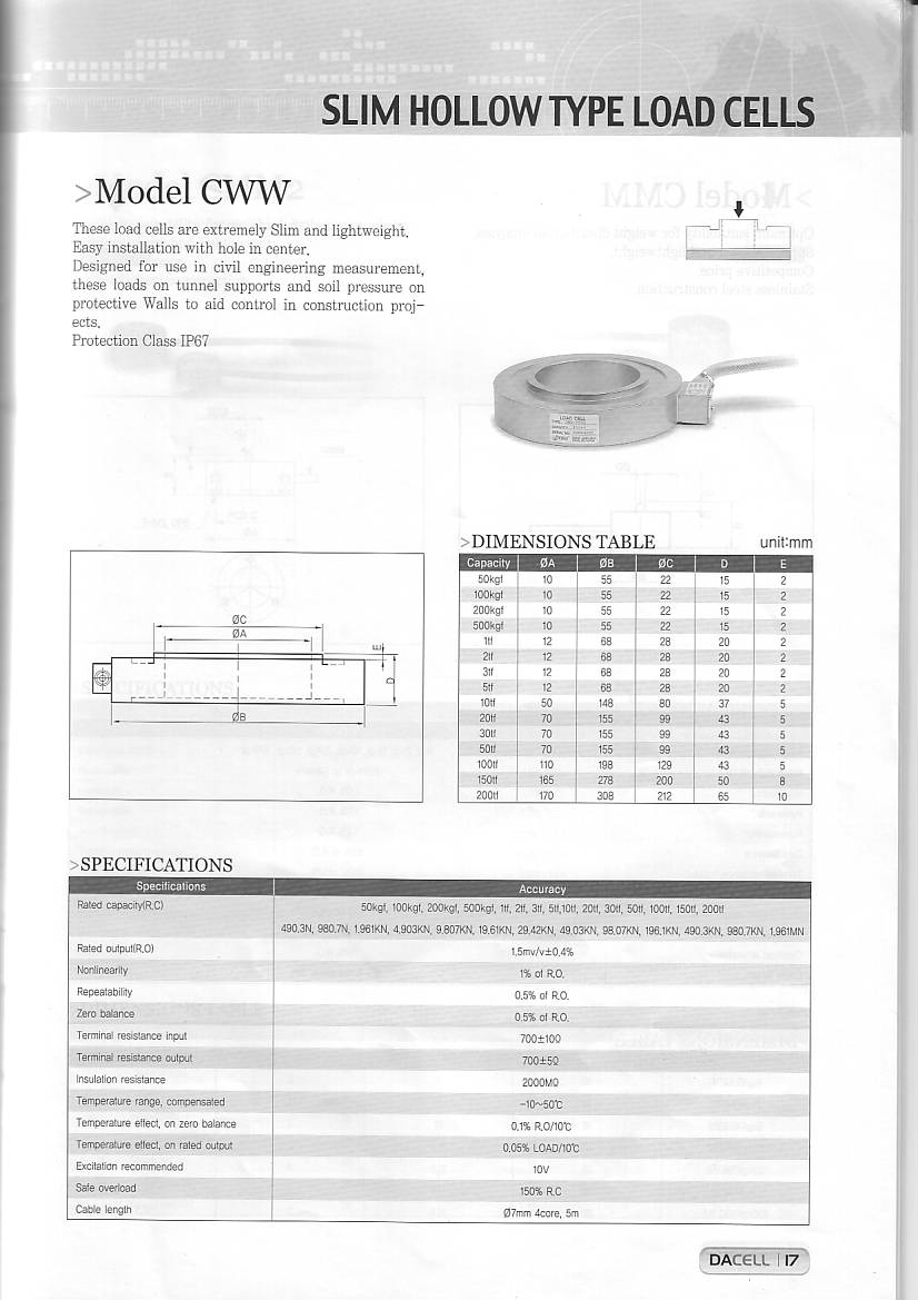 DAcell CWW 稱重傳感器技術(shù)參數(shù):