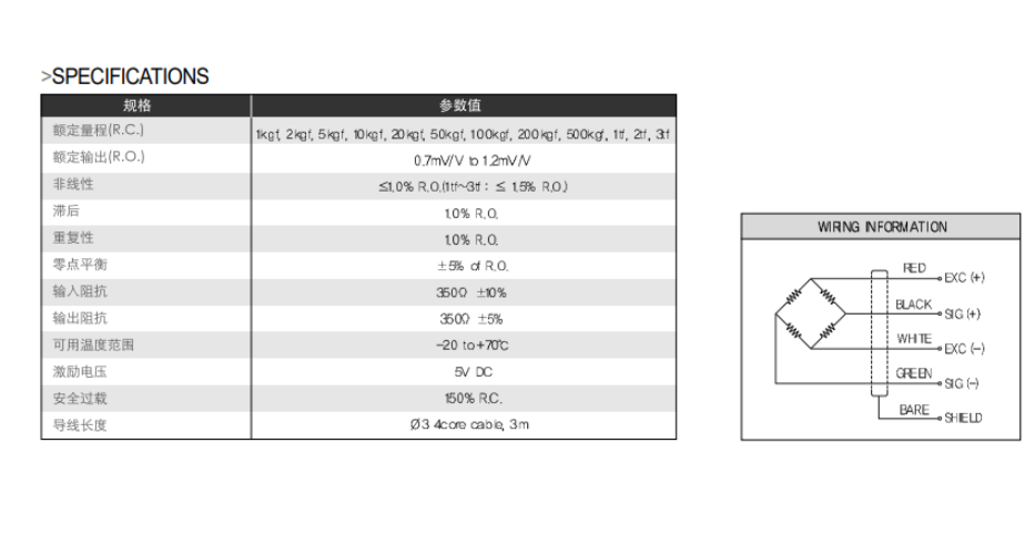 韓國Dacell稱重傳感器CMM2-T1產品技術參數:FSa廣州南創電子科技有限公司