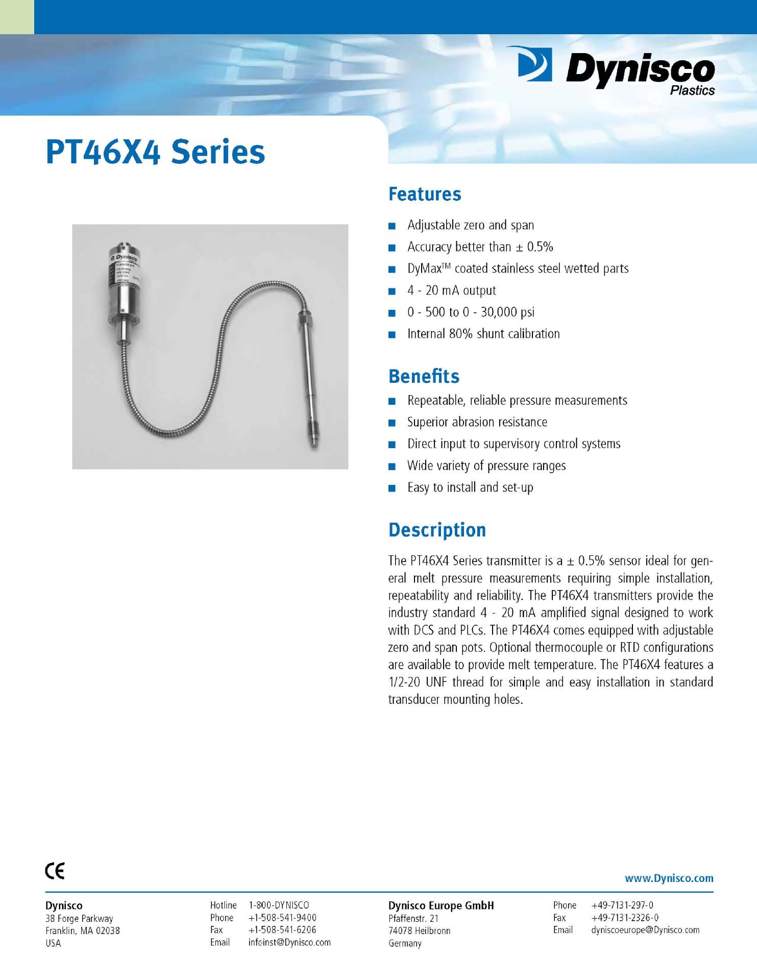 PT462E-35MPA-6/18美國Dynisco丹尼斯科壓力傳感器 變送器