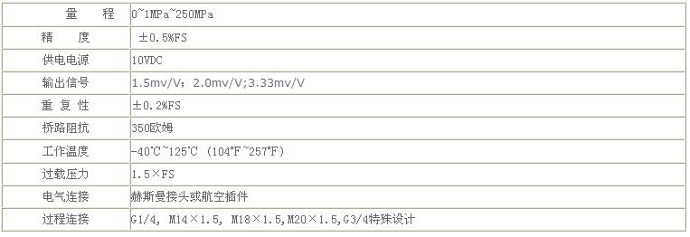 滯后≤%F·S±0.03〜PT214C壓力靈敏度溫度系數(shù)≤%F·S/60℃±0.05